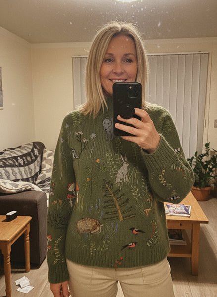 Kvaliteten på den här stickade koftan är helt otrolig – den känns verkligen som handgjord. Mjuk, välgjord och något alldeles extra.