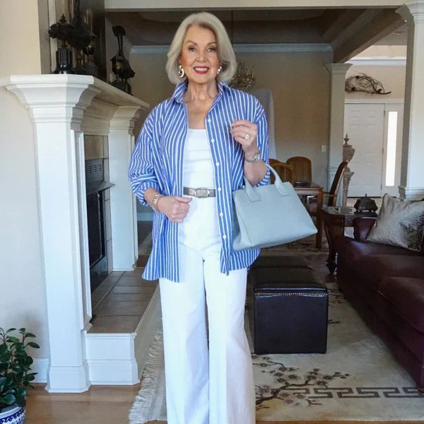Jag älskar hur luftigt och behagligt den här linneskjortan känns, även under friska höstdagar. Den går perfekt att bära under en kofta eller jacka och håller mig bekväm hela dagen.